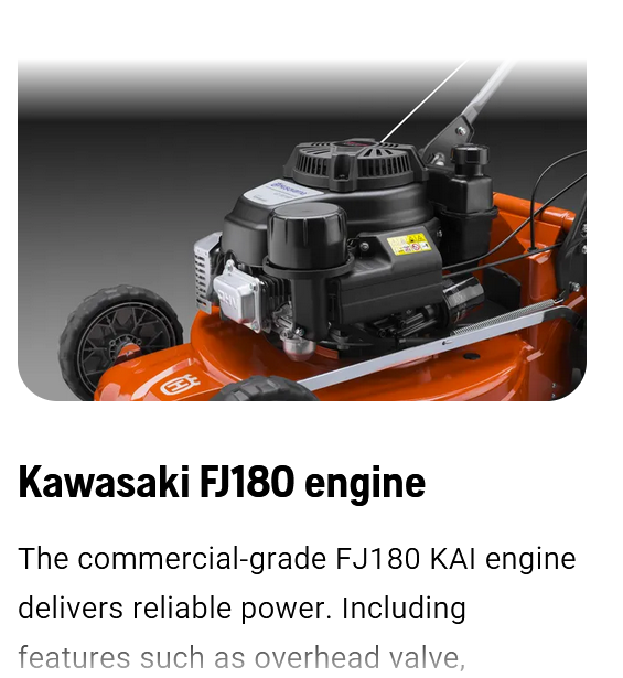 Compact, durable walk-behind mower with powerful commercial FJ180 Kawasaki engine, large fuel tank and wheels with rubber tires. With variable speed, blade brake control and side protection bumpers, this model is a perfect choice for professionals who demand reliable, long-lasting performance and outstanding results. Includes a 2-year warranty.