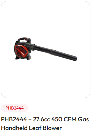 High-performance 27.6cc gas handheld leaf blower with 450 CFM air volume for superior debris clearing power. Enhanced engine delivers more airflow while maintaining lightweight portability. Ideal for clearing leaves, grass clippings, and debris from large areas.