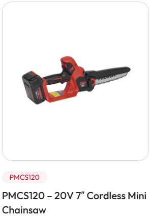Compact and powerful 20V cordless mini chainsaw perfect for pruning, trimming, and light cutting tasks. Features a 7-inch bar for precise cuts and cordless convenience. Ideal for homeowners and professionals who need portability without sacrificing performance.
